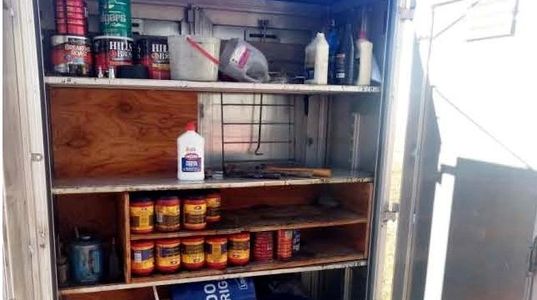 The bottom shelf of kits is empty kits. These cans are also turned upside down when returning to the cabinet.